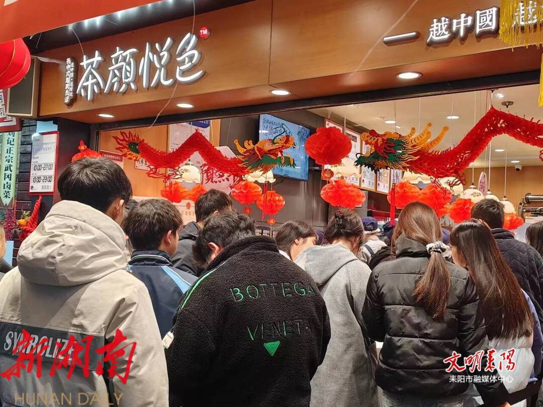 “以前喝茶颜悦色都得跑到长沙,现在耒阳也有了,实在是太好了,在家门口就能喝上。”近日,网红品牌茶颜悦色在耒阳南正街正式营业,慕名而来的市民络绎不绝,门外排起了长队,大家迫不及待地想体验这家新茶饮店的产品。