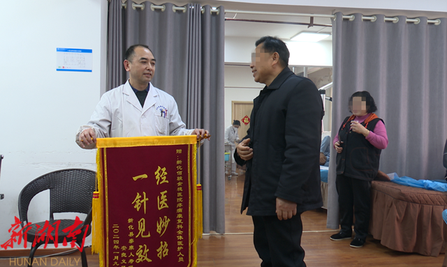 湖南日报·新湖南客户端1月10日讯(通讯员 曾振科 罗曼 吴佳 卿逸辉)1月9日,患者安某义将一面锦旗送至新化佰骏金穗医院疼痛康复科主任伍先美手中,感谢科室全体医护人员高效细致的治疗服务。
