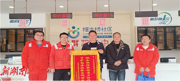 国家管网集团西气东输公司长沙输气分公司工作人员为㮾梨街道檀木桥社区送上锦旗表达感谢。