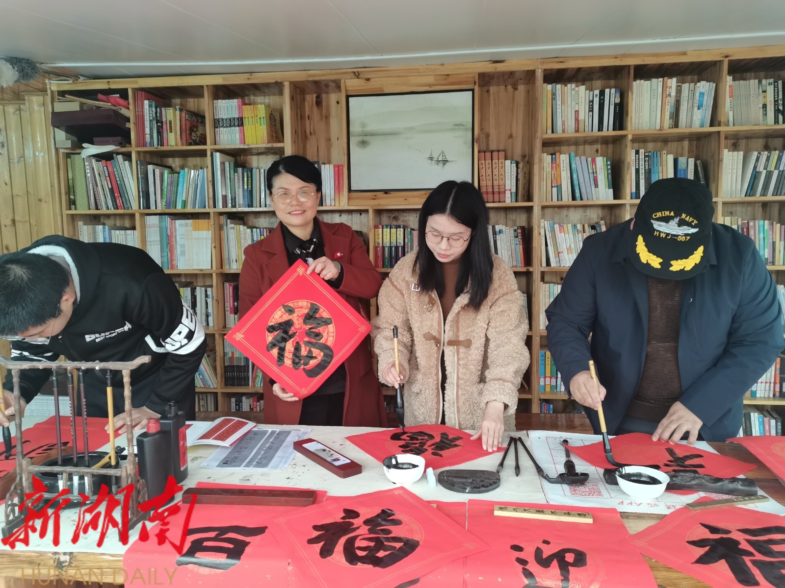 1月14日上午,“蘭媛风”文艺小院墨香弥漫。为喜迎新春佳节,武陵区政协艺丹沅文艺界委员工作室携手丹洲乡新时代文明实践所,联合胡文钟书法学校的师生在丹砂村的“蘭媛风”文艺小院开展“我们的节日•春节”暨“春至百家 福佑中华”送春联进乡村文化活动,受到村民们的热烈欢迎。