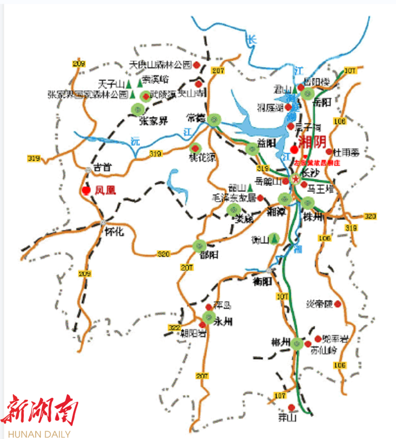 推荐路线二:湘阴、长沙、韶山、凤凰、张家界五日游