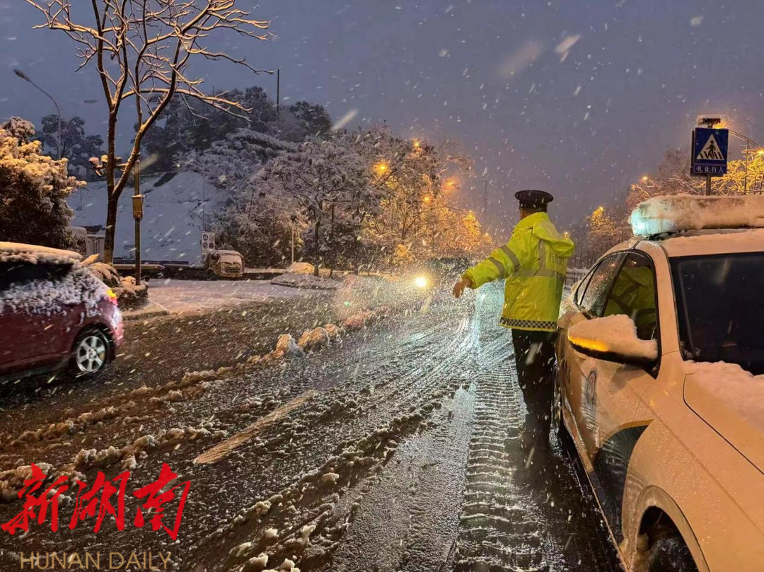 “湘龙交警中队对辖区易结冰桥梁,涵洞等易结冰路段加强巡查值守。”中午时分,正在路口执勤的湘龙交警中队队长陈政凌介绍道,通过及时疏导,目前辖区交通路况基本正常。