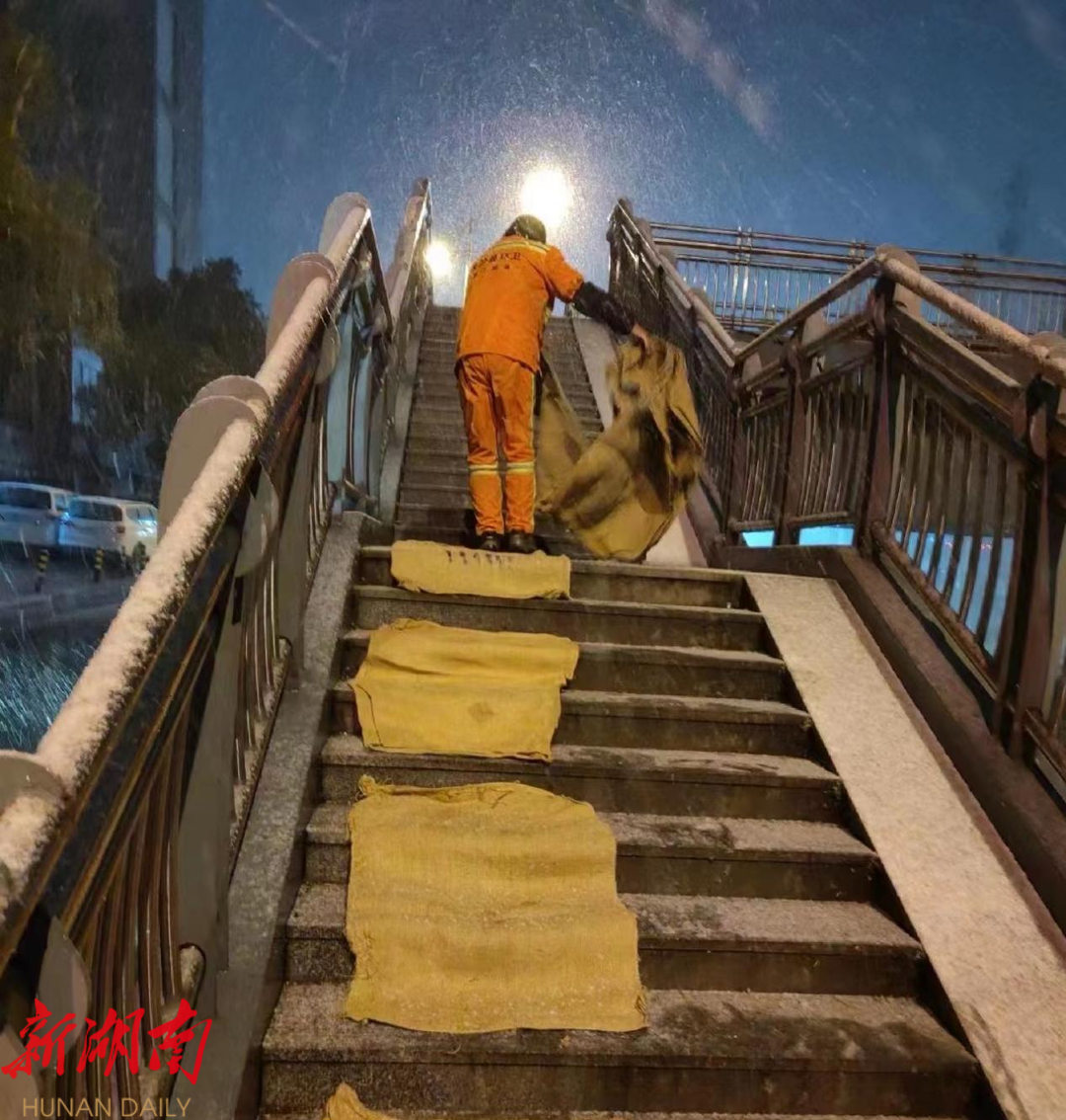 截至目前,湘龙街道启用巡查车辆8台,货车9台,平地机3台、铲车3台和撒盐机2台,使用5吨多工业盐,铺设近2500个麻袋。组织环卫、城管、交警、执法及志愿者等2000余人持续开展扫雪除冰保畅工作,通过“机械+人工”的方式,全面清理辖区内主次干道、辅路、人行道、桥、坡道积雪,保障市民出行平安。