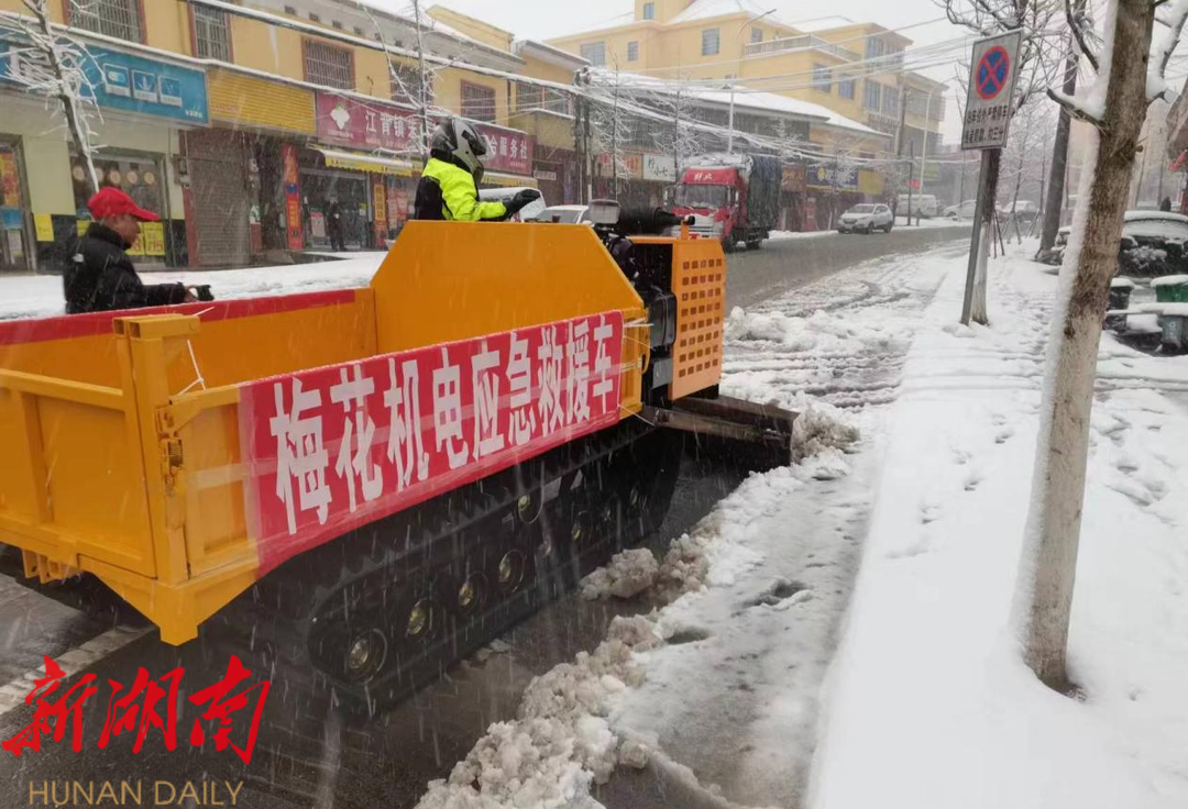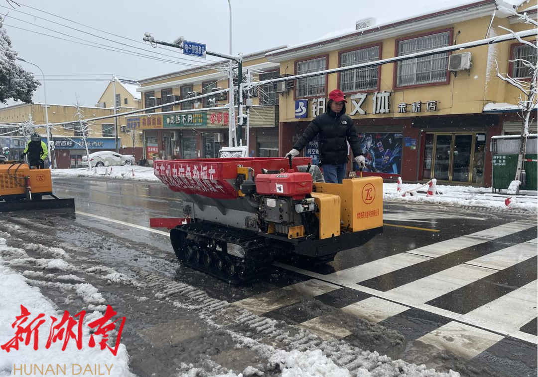 “早上7点,我们公司组织的铲车已上路进行作业。”在铲雪现场,湖南梅花机电科技有限公司的司机师傅们熟练操作着铲车,在路上来回穿梭。短短几个小时,就为群众清扫出了一条条畅通无阻的道路。