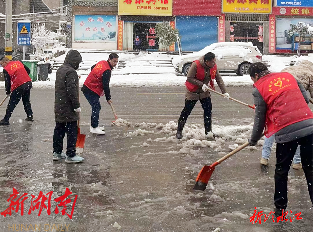 22日上午9点,在冷水江街道柘溪院子小区,党员干部、“三长”、网格员以及志愿者拿起铁锹、扫帚、推铲等工具,一同清理小区道路上的冰雪,经过连续奋战,积雪被清理干净,也为小区居民开辟出了一条条“便民之路”。“小区内老年人比较多,这次降雪让路面变得特别滑,老人们出门买菜都不方便。”冷新社区党总支书记余致力望着小区干净平坦的路面说,多亏了大家齐心协力,让居民出行的安全畅通有了保障。