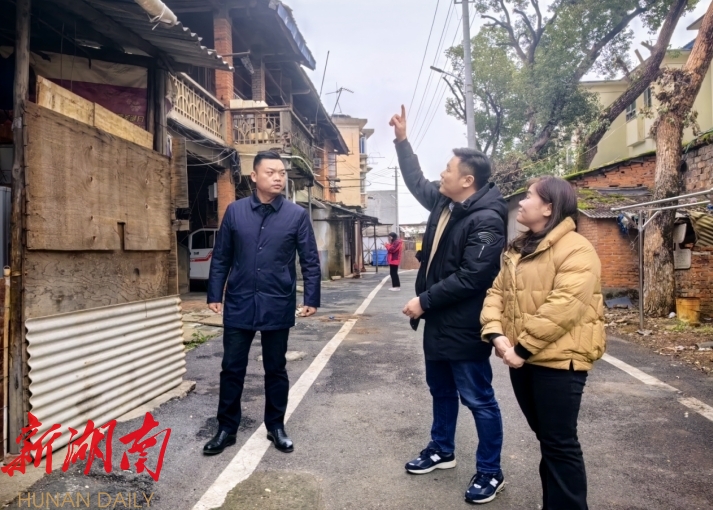 1月21日下午,泉塘街道党工委书记田勇(左一)、街道办事处副主任冯伟桥(中)到泉盛社区浦沅生活小区开展安全检查,叮嘱社区书记要关注居民的生活需求、加大老旧房屋的巡查力度。