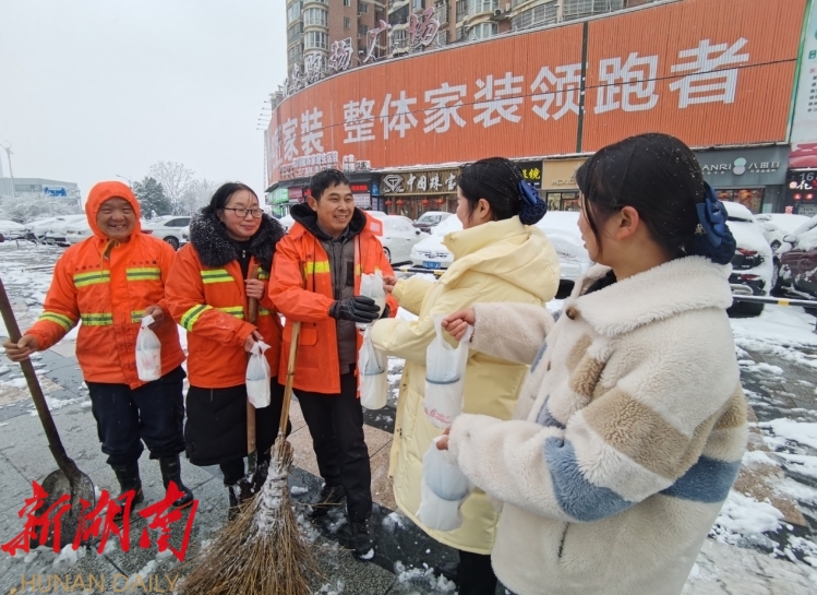 1月22日下午,阳高社区肯德基餐厅负责人看到门店附近一群环卫工人(润浩物业)正在奋力铲雪,立即配置了十多杯热腾腾的红茶,让员工送到每一位环卫工人手中,为大家驱寒,以实际行动为环卫工人送上暖心关怀。