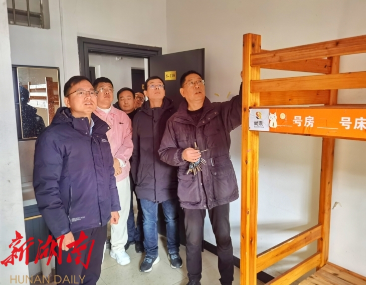 1月21日上午,泉塘街道党工委副书记、办事处主任李志明(左一)到长桥补习学校排查安全隐患,因房屋年代较久,校内还有几株高大树木,检查组再三嘱咐负责人注意用电安全,提升安全意识。