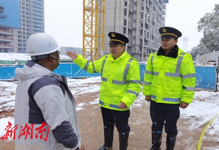 1月22日下午,泉塘行政执法队廖威、罗文斌到星湖国际在建工地巡查,要求负责人文明、安全施工,加强对工地的安全管理及施工现场环境保护,把应对低温雨雪冰冻天气作为当前头等大事来抓,做到早预防、早行动、早落实。