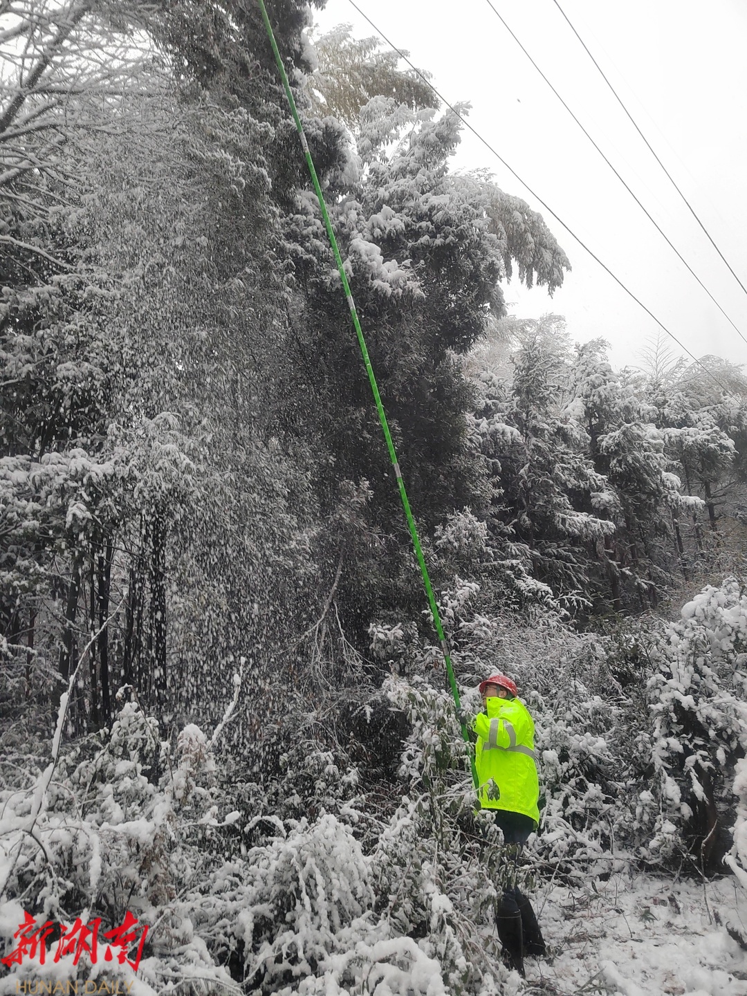 “X041县道路口,毛塘集镇积雪清除完毕。”上午9点在刚被清理完的路上走一圈,文旅融合办主任刘宁在机关群里汇报着除雪最新进展。与此同时,安沙供电所组织专业力量对电力线路进行巡查维护,及时开展扫雪清障,以迎难而上的行动力保障居民群众用电安全可靠。