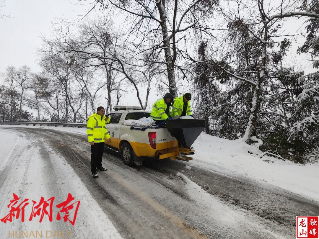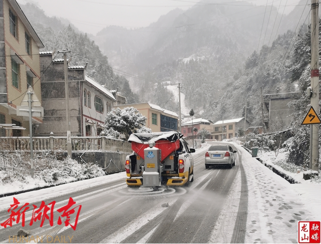 龙山县融媒体中心1月22日讯(通讯员 潘恒)1月21日晚,受本轮冷空气影响,龙山县域内多地普降雨雪,县公路建设养护中心紧急启动抗冰保畅工作应急预案,牢固树立“防大雪、抗大灾”的思想,部署应急保畅人员和机械设备入驻防冻防滑执勤点,迅速上路巡查,积极开展道路破冰除雪保畅工作,把抗冰保畅工作作为当前的头等大事来抓,最大限度地减少人员伤亡及财产损失,确保公路安全畅通。