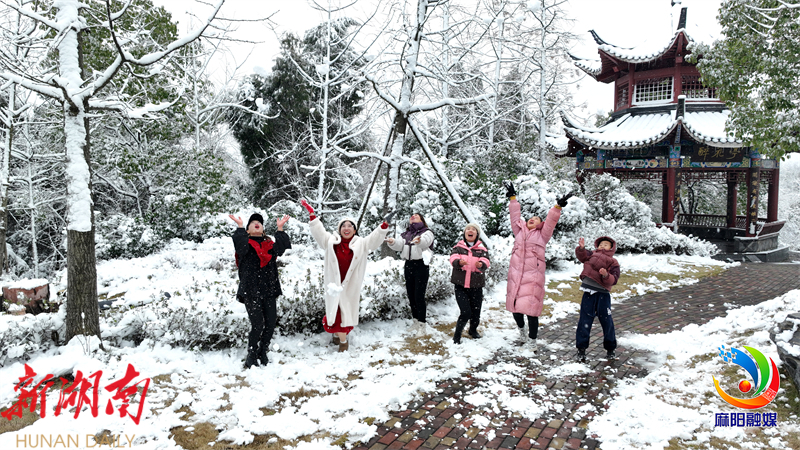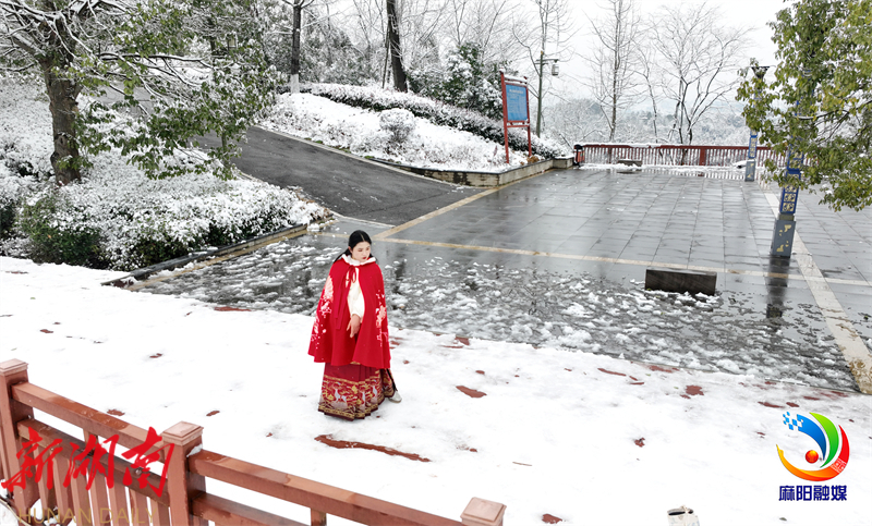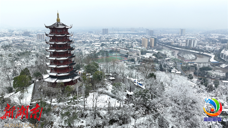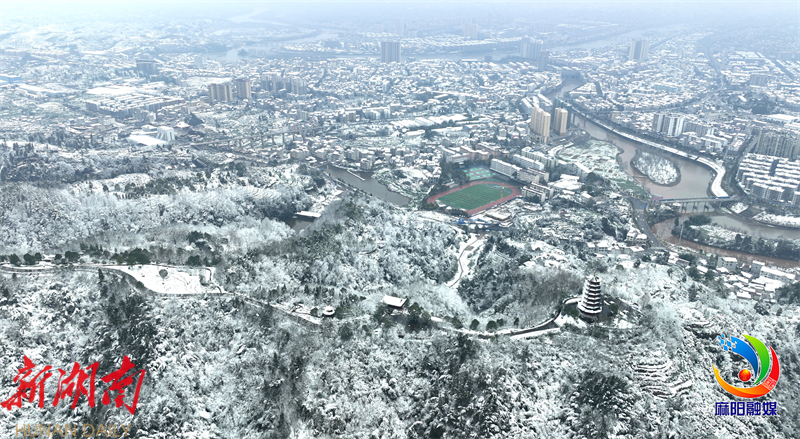 1月22日下午,大雪过后的麻阳文名山森林公园分外妖娆。万寿塔上积雪犹存,山林树枝丛中飞雪成团,市民嬉戏于雪地之中,更妙之处,远处可见的富州城沉浸在一片雪白的世界里。