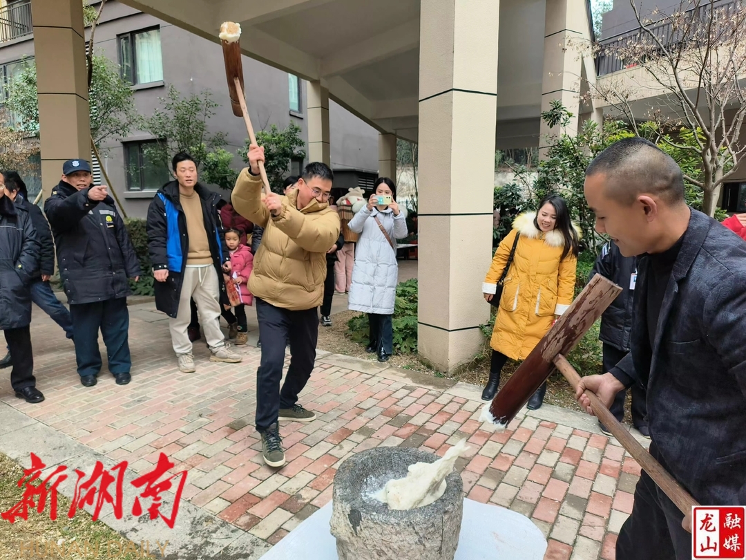 龙山县融媒体中心1月23日讯(通讯员 王莉)蒸糯米、打糍粑,欢欢喜喜迎新春,欢声笑语乐开怀。1月23日,华塘街道及留繁社区联合辖区住宅小区至尊府开展清廉文化进社区暨“寻年味·拾年俗,‘糍’旧迎新打糍粑”文化活动,居民朋友们齐聚一堂打糍粑、炸爆米花、进行未成年人保护、禁毒安全及廉洁知识抢答、给小区居民免费磨刀具等丰富多样的志愿服务活动,欢喜迎新春。