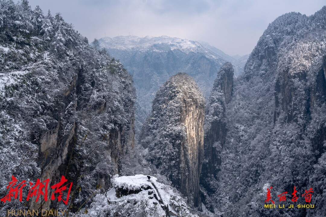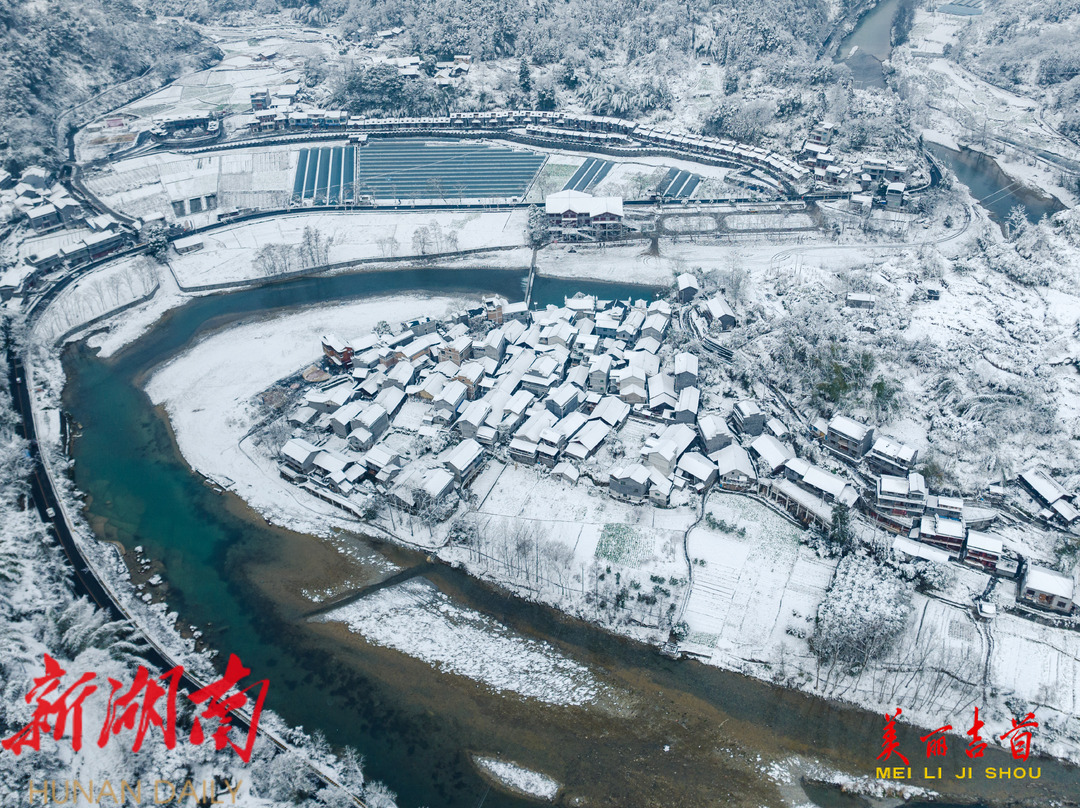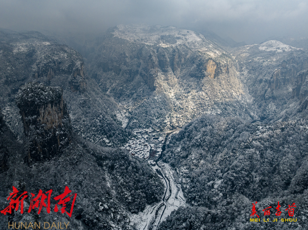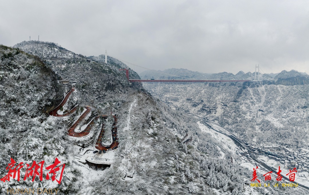 1月23日,吉首市矮寨镇雪后初霁,银装素裹的苗寨、峡谷、山峦......宛如冰雪世界,美景如画。