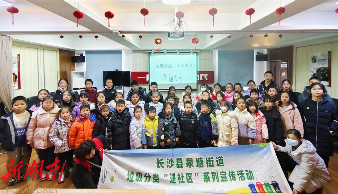 湖南日报·新湖南客户端1月25日讯(通讯员 毛侨伟 罗安琪) “小朋友们,今天我们来学习垃圾分类,你们知道垃圾分为几种类型吗?”“姐姐,我知道!垃圾分为可回收垃圾、厨余垃圾……”伴随着中小学寒假假期的到来,近日,泉塘社区新时代文明实践站联合泉塘街道生态环境办、金龙环卫公司开展“分类在手中,文明在心中”垃圾分类志愿服务活动,给孩子们假期带来了一堂特殊课程。
