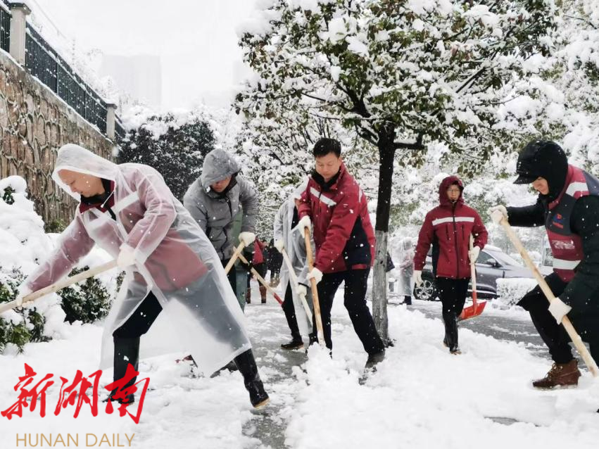 面对突如其来的大雪,县卫健局机关以及各医疗卫生机构党员志愿者们迅速行动起来,铲雪除冰,以实际行动为居民开辟安全通道。
