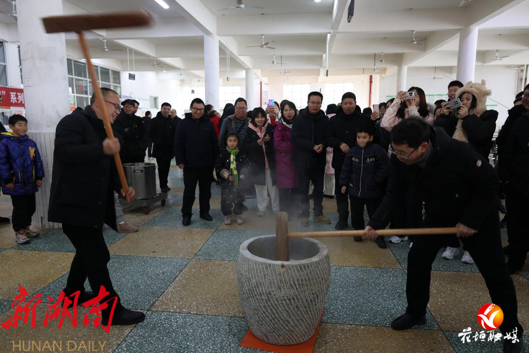 解开谜底的喜悦,听锣声响起的激动在每一位教师的脸上展现。围棋、象棋决赛赛场,老师们面对棋局或屏气凝神、皱眉沉思,或气定神闲、胸有成竹,畅享对弈的乐趣。 扬锤、落锤、翻米团,糍粑的香味渐渐飘出,一个个圆圆的糍粑寓意着和谐与团圆。 当生日歌响起,1月份过生日的29位教师收获了拥抱、祝福,场面感动无限,温暖无限。