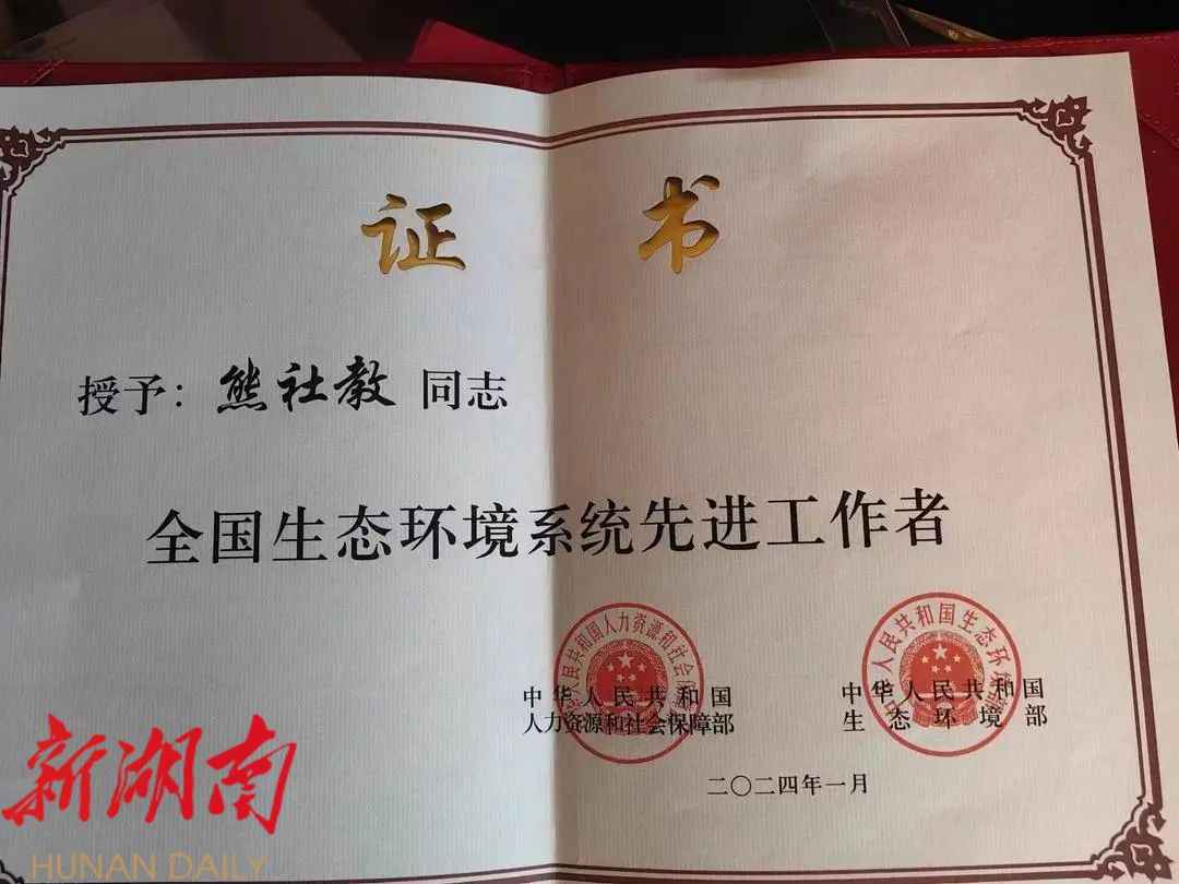 湖南日报·新湖南客户端1月25日讯(记者 陈中化)1月24日,全国生态环境系统先进集体和先进工作者表彰大会在北京召开,张家界市生态环境局桑植分局党组书记、局长熊社教荣获“全国生态环境系统先进工作者”称号,为湖南省唯一。