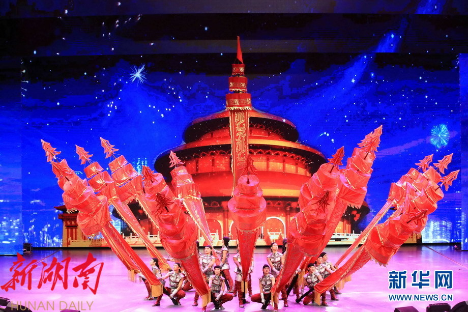 沧州杂技演员表演荣获中国杂技金菊奖的杂技节目《龙跃神州——中幡》。刘文忠 摄