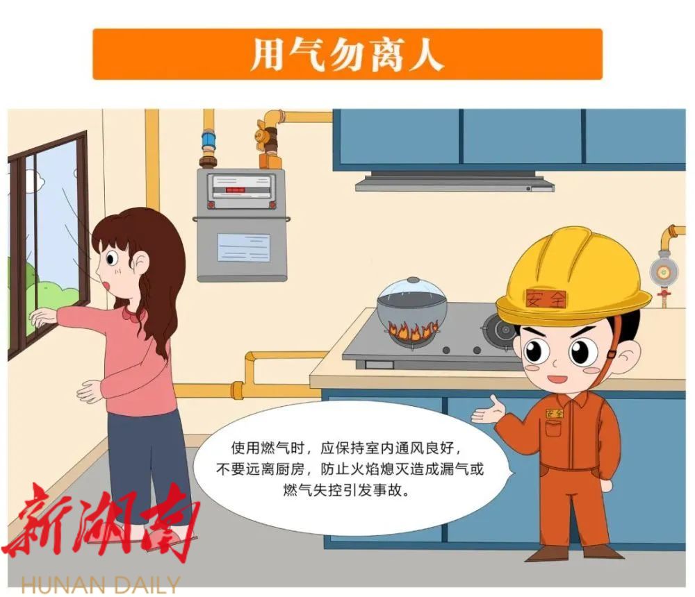 2.使用燃具要有人照看,防止煤气火焰被风吹灭或被溢出的汤浇灭,造成煤气泄漏引起事故。