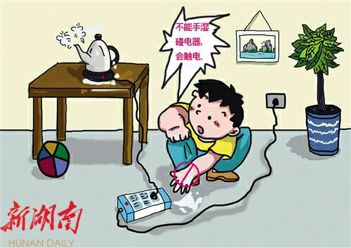 1.使用家庭电器时,禁止用湿手接触带电的开关。因为水是可以导电的,湿的手去接触带电的开关会给人造成电击伤害,严重时会导致人的生命受到威胁。