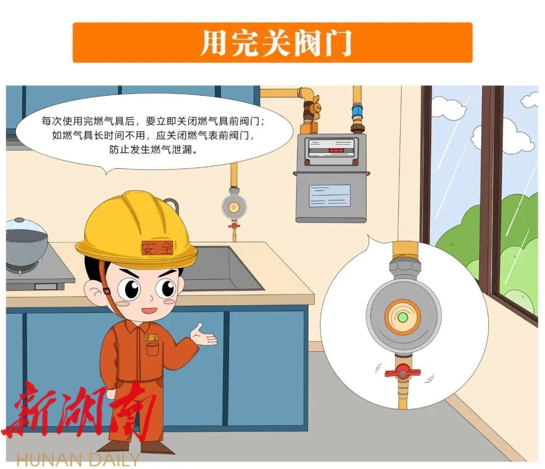 5.外出、夜间入睡前,长期不用燃气具时,一定要关闭室内总阀。