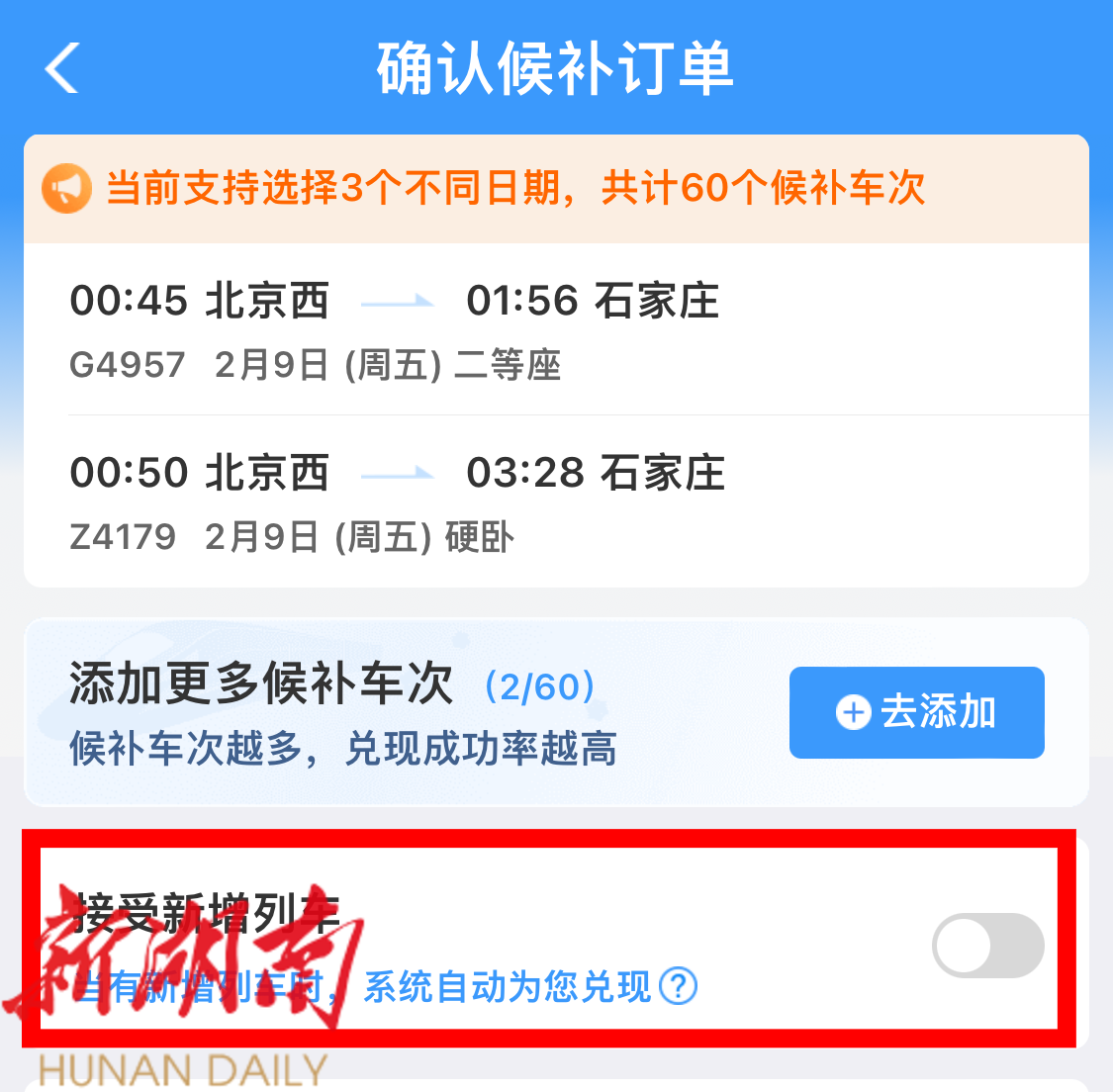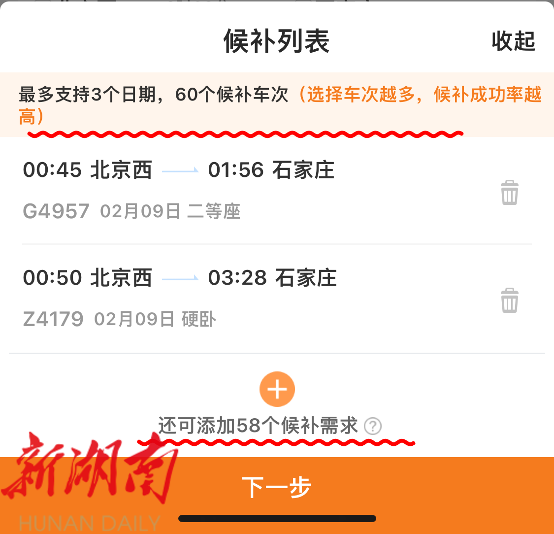 每个候补订单最多可选3个日期,60个候补车次,9位乘车人,要领→多多益善。