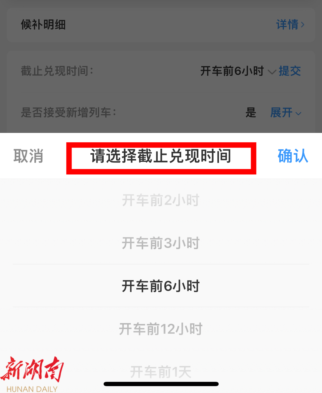 2、右滑“接受新增列车”