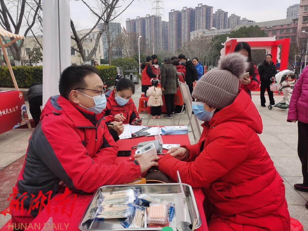 在另一侧的免费便民服务区,辞旧迎新自然要从“头”开始,志愿者陈仙华和孟红云正在为嗲嗲娭毑们修剪新发型;老百姓大药房的景店长在为老人测量血压和血糖,并叮嘱老人家一定要按时用药稳定血压血糖;泉塘街道社区卫生服务中心的何焕新医生在为居民进行中医体质辨识后,对症辅以推拿和耳穴压豆的中医保健疗法。