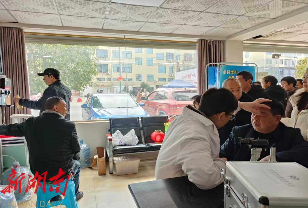 【送健康】受邀而来的浏阳市集里医院眼科专家来到活动现场为各位老年人检查眼睛,并向小朋友们科普护眼小知识。