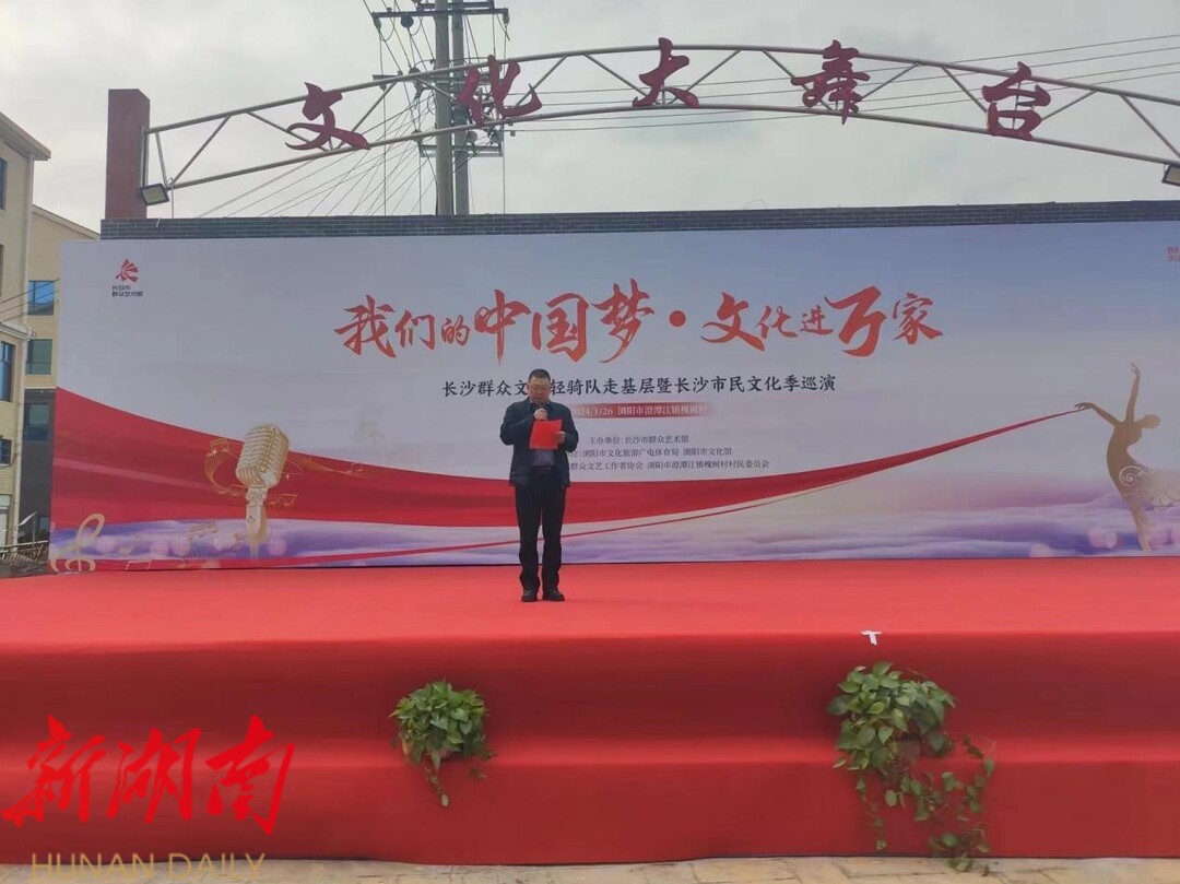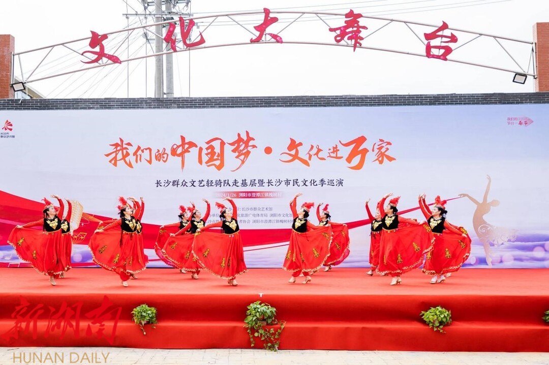 湖南日报·新湖南客户端1月27日讯(通讯员 陶富强)瑞虎辞春,龙舞新年。1月26日下午,槐树村新时代文明实践站邀请长沙市群众艺术馆,在文化大舞台举办“送福气,送文化,送温暖,送健康、送理论”为主题的迎新活动。本次活动共计近千名村民参与,参与演出人员共计80余人。