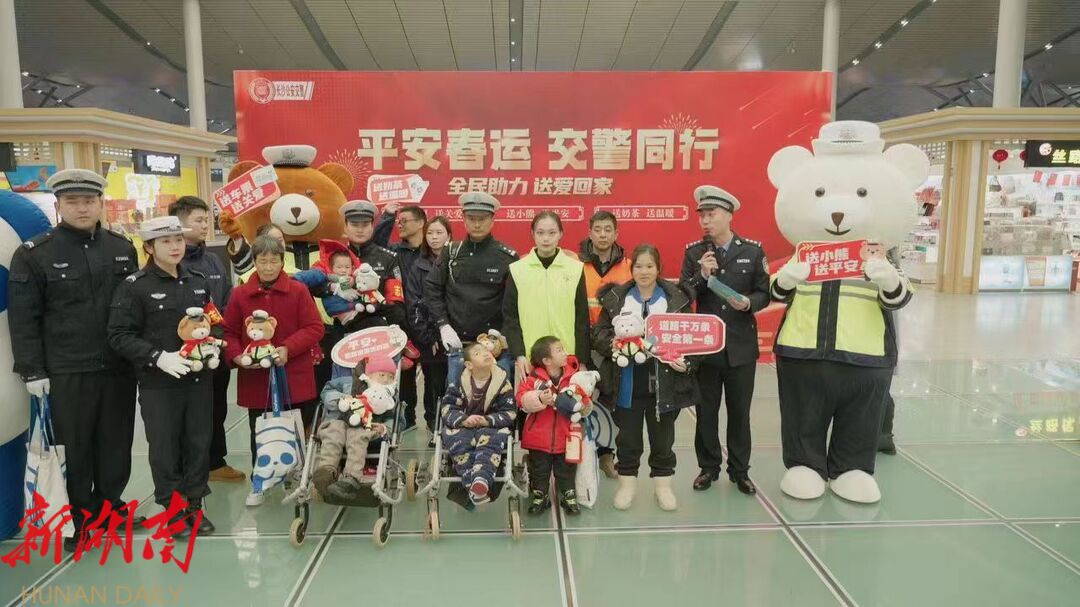 湖南日报·新湖南客户端1月28日讯(通讯员 杨哲 刘露)2024年春运从1月26日开始至3月5日结束,时间跨度为40天。春运第一天,长沙公安交警同步启动“平安春运 交警同行”爱民实践活动,通过活动宣传交通安全知识,帮扶弱势群众顺利返乡,助力春运安全平稳。