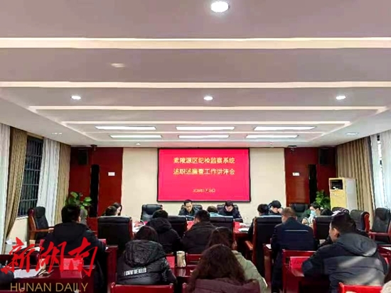 湖南日报·新湖南客户端1月24日讯(通讯员 刘觅)1月24日,武陵源区纪委监委召开2023年度纪检监察系统述职述廉评议会议,总结工作成绩、查找短板弱项,谋划新一年工作。区委常委、区纪委书记、区监委主任肖启宇出席会议并讲话。