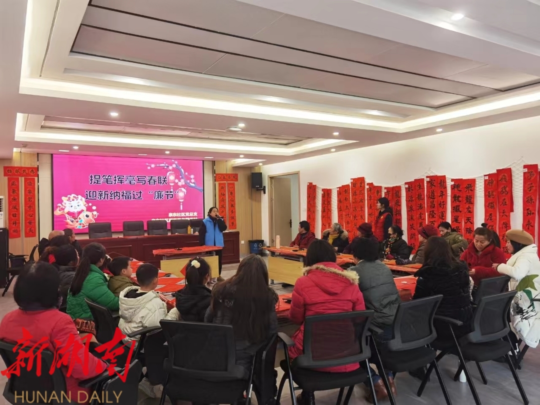 为弘扬优良传统,树立文明新风,营造廉洁文明、欢乐祥和的节日氛围,喜迎2024年龙年春节。2月1日,长沙县泉塘街道泉东社区党总支联合泉东社区居家养老服务站,在社区新时代文明实践站里举办了一场主题为“提笔挥毫写春联,迎新纳福过‘廉’节”的年味主题活动,吸引了辖区居民朋友50余人参加。