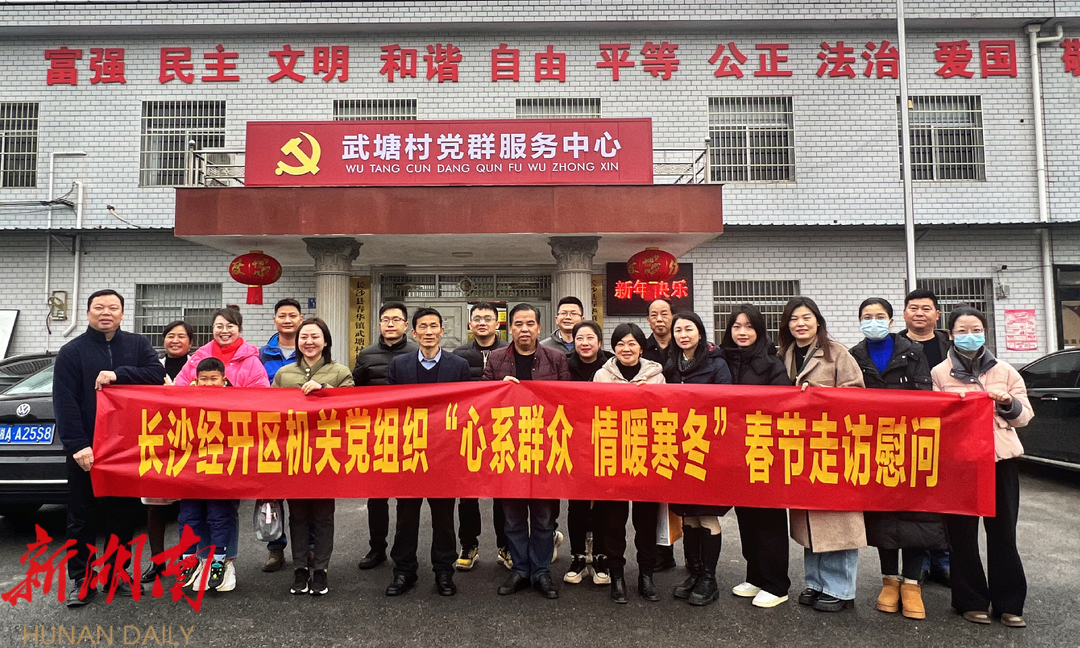 湖南日报·新湖南客户端2月2日讯(长沙经开区工作站记者 陈琪 通讯员 刘玉)新春将至,为深入践行全心全意为人民服务的宗旨,帮助联点困难群众度过一个温暖、祥和的春节,2月1日上午,长沙经开区机关党委组织15个机关支部党员代表来到长沙县春华镇武塘村,深入困难群众家中走访慰问,并送去新春的美好祝福。