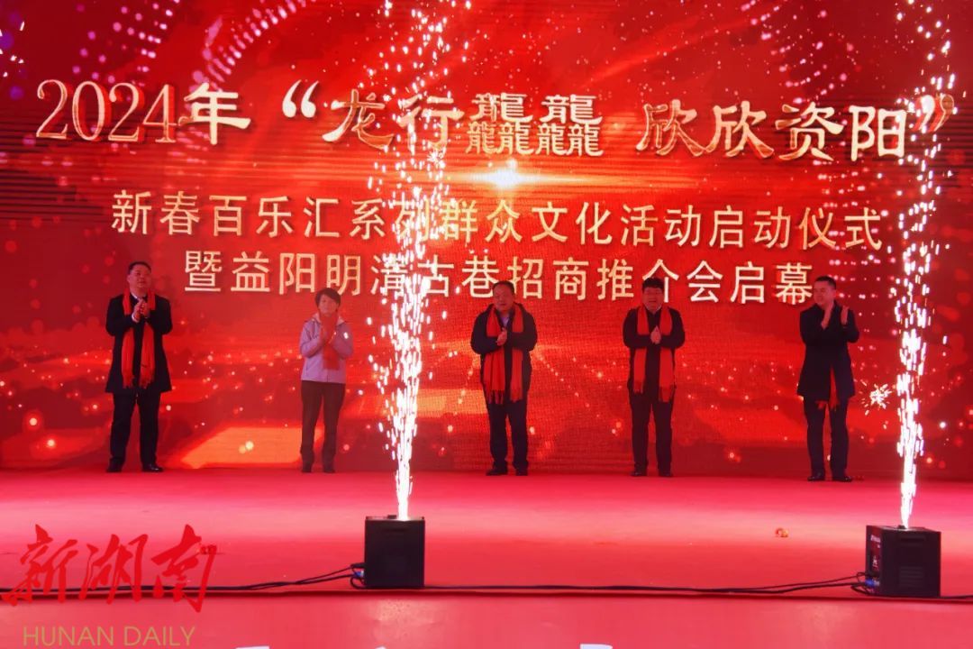 2月3日,2024年“龙行龘龘 欣欣资阳”新春百乐汇系列群众文化活动启动仪式暨益阳明清古巷招商推介会正式启幕。市人大常委会副主任黄育文出席,区委书记付振南出席并致辞,区委副书记、区长黄瑛出席活动,在家的四大家领导,企业主要负责人,商家、协会商会、旅行社、景区及媒体代表参加此次活动。