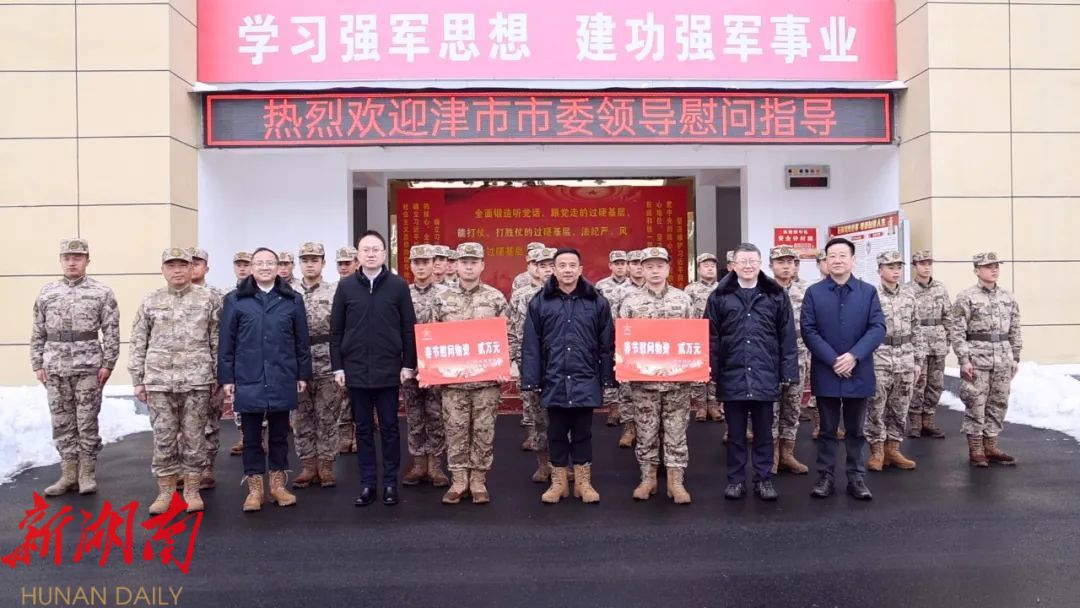黄旭峰、彭子晟一行先后前往市信访局、供电公司、公安局、汪家桥街道卫生服务中心、应急管理局、人武部、武警大队、消防救援大队、融媒体中心、城管局、交警大队,走访慰问驻津部队及优抚事业单位一线工作人员,向大家致以新春佳节的问候和祝福。