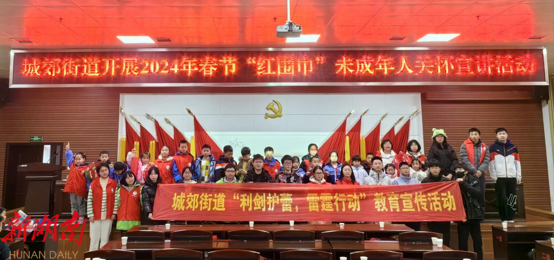 宁乡市城郊街道新时代文明实践所开展2024年春节“红围巾”未成年人关怀教育宣讲实践活动