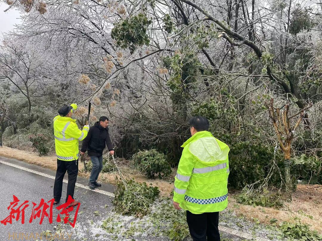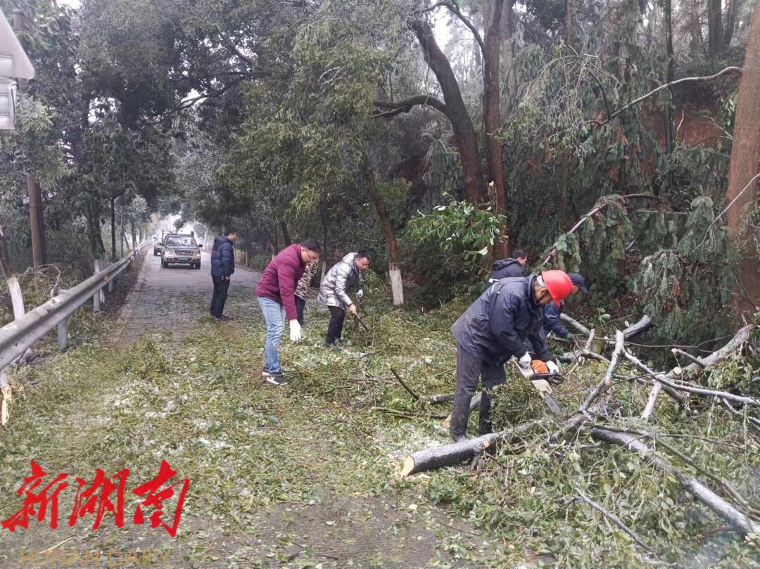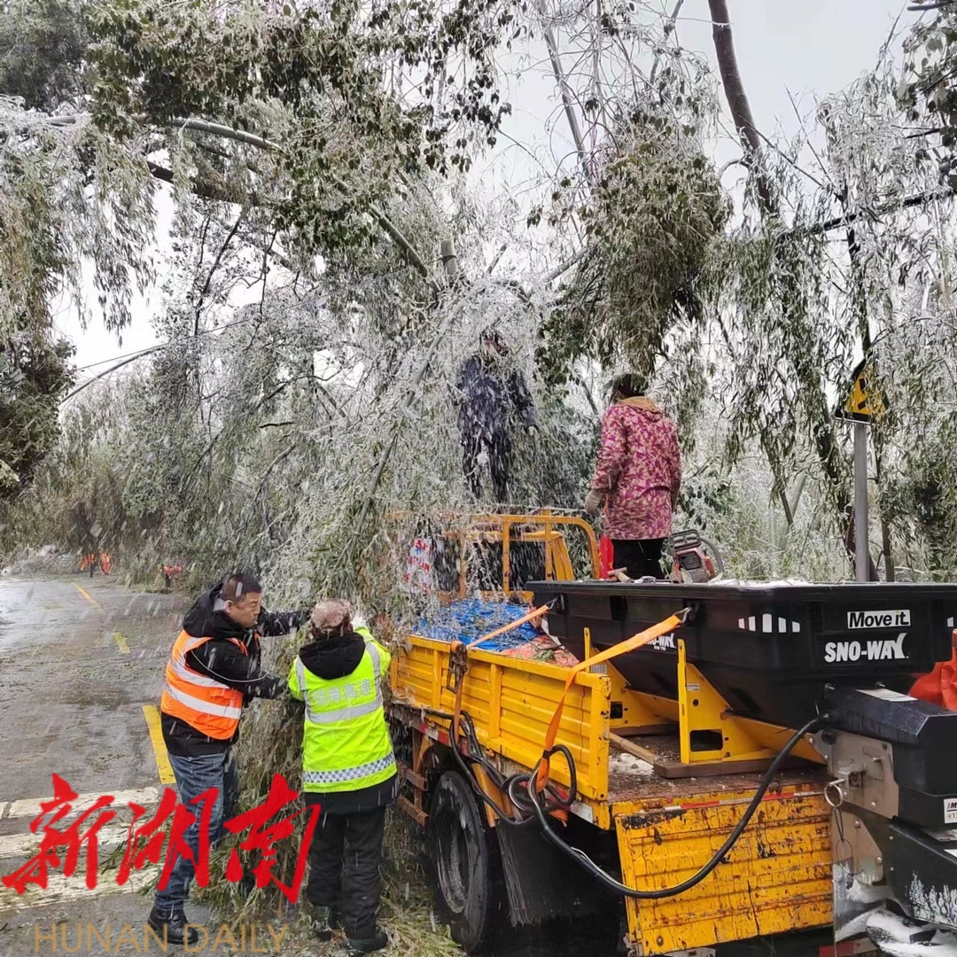 开慧供电所相关负责人介绍,受近期雨雪天气的影响,出现结冰和树木倒伏情况,他们已连续进行了一天的树障清理、杆线恢复工作,将继续全力抢修电网,以保障人民生产生活。