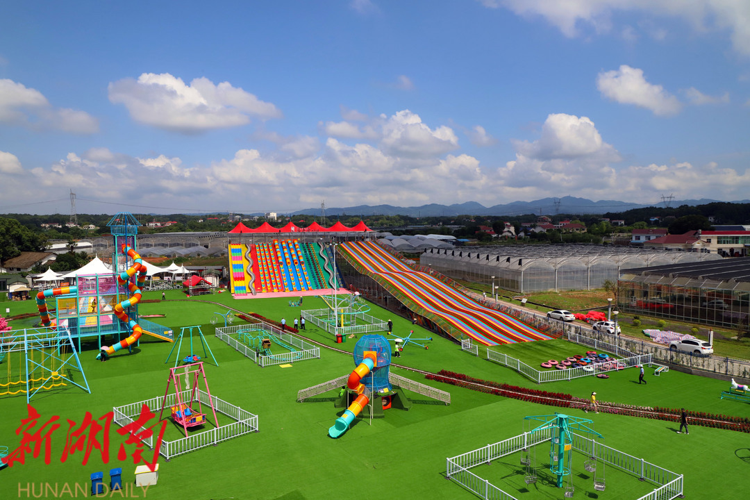 漫步安沙花卉产业示范园,花乐岛亲子乐园的“天空步道”色彩缤纷,格外显眼。据了解,该项目位于新华村,项目总占地7万平方米,涵盖了30多种大小游乐项目。同时,园区还建设了美食广场、生态休闲区、科普馆等配套设施,不仅能够满足孩子畅玩的梦想,培养小朋友的冒险探索精神,同时还能满足“大朋友”们休闲娱乐的各种需求。
