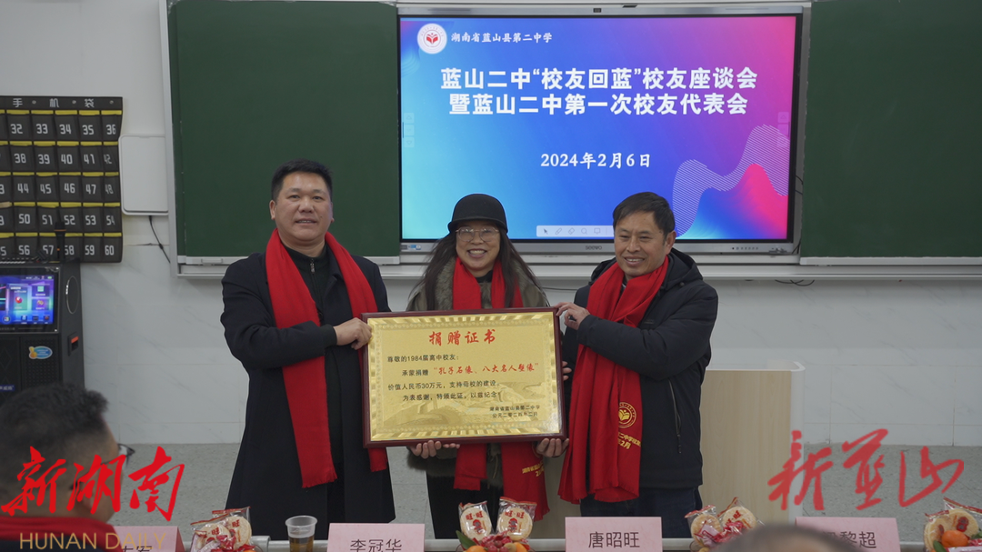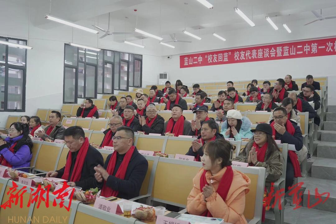 湖南日报•新湖南客户端2月8日讯 (通讯员 文惠 黄菲菲 成桦凌 许珍苏)2月6日下午,蓝山县第二中学召开“校友回蓝”工作座谈会暨蓝山二中第一次校友代表会议。80余名优秀校友代表受邀回母校交流座谈,畅叙情谊、共谋发展。