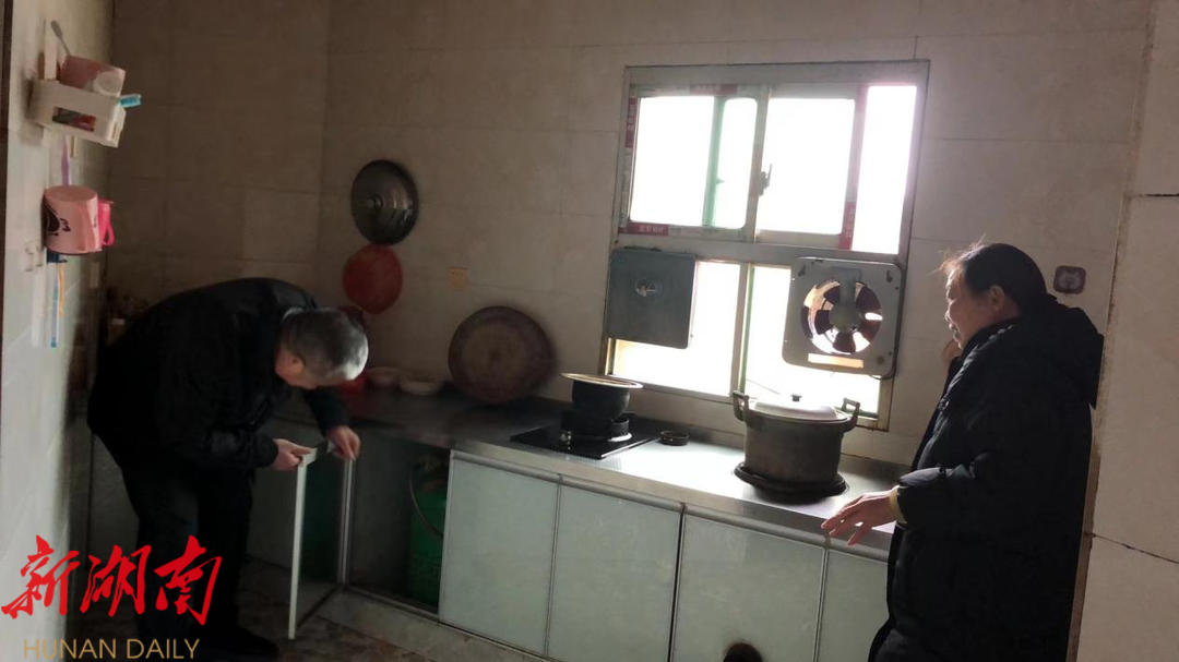 “娭毑,家里烤火要与干柴堆隔开些,用煤炭取暖时门窗不能关太严实要空气流通,防起火、防一氧化碳中毒,镇村干部与市直派驻队员下户走访时说。