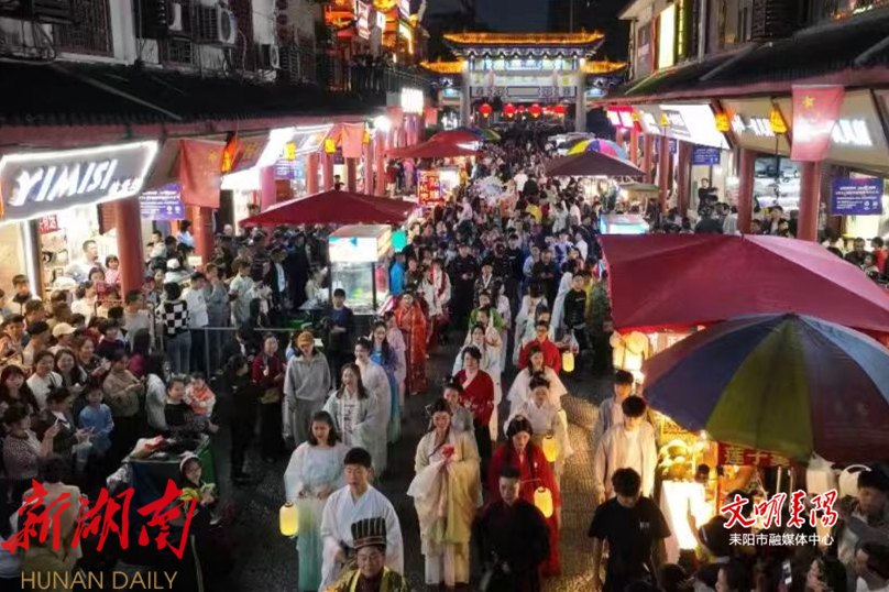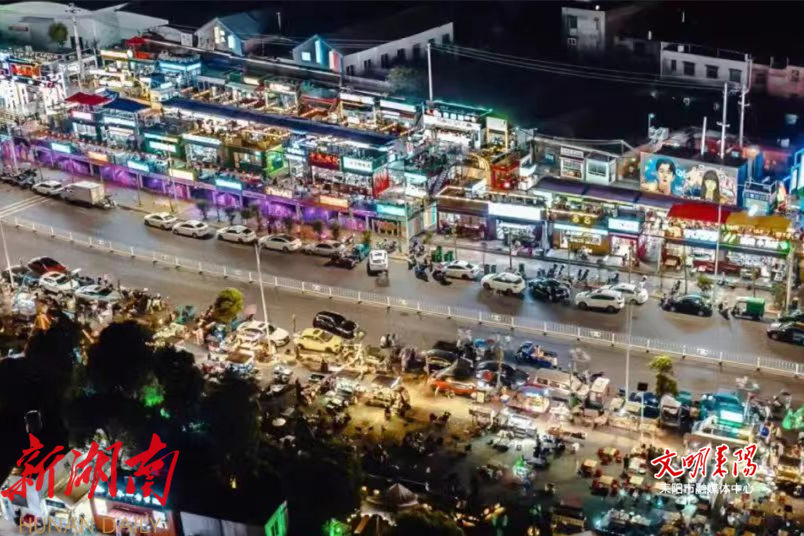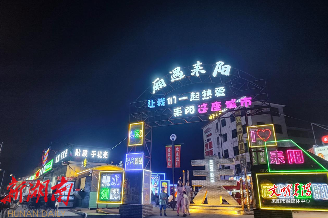 耒水河畔,鹿岐峰下,璀璨灯火下一片独特的夜市胜地——“厢遇耒阳·码头烟火”。夜市占地1.9万平方米,入驻商家500多户,是美食体验、娱乐休闲、文化观光等业态融合与互补的城市特色商业区,成为湘南地区夜经济的“顶流地标”,并获评首批湖南省夜间消费聚集示范区。