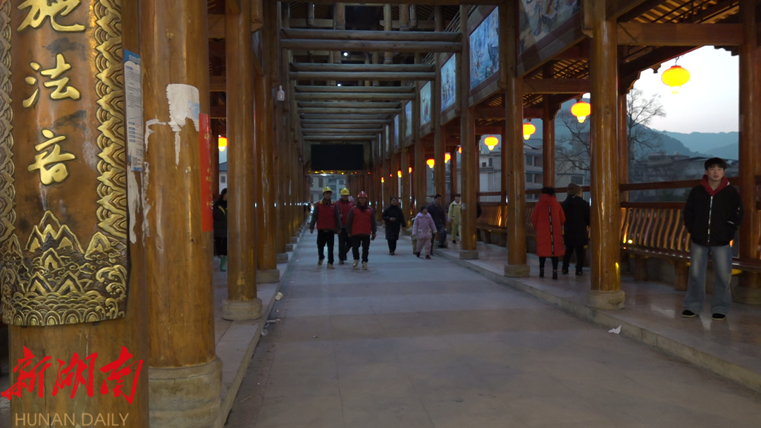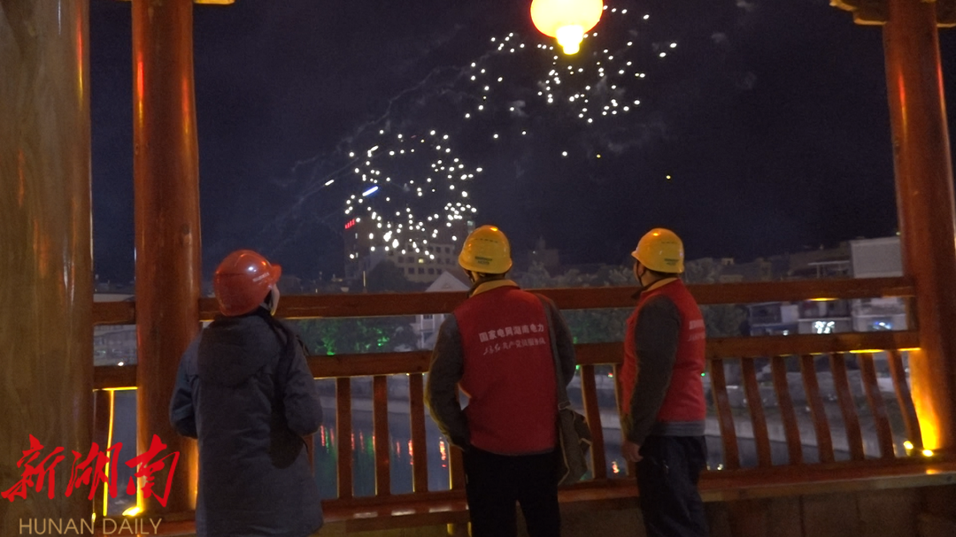 晚上7点,夜幕之下的山门"风雨桥”灯火璀璨、游人如织,一派欢乐祥和的景象。身穿“红马甲”的党员服务队队员王晓伟带着小徒弟许名来和曾卜吉来到回龙街,走村入户,对家庭低压线路、家用电器、开关等进行逐项检查,查看是否有破损、漏电等情况。