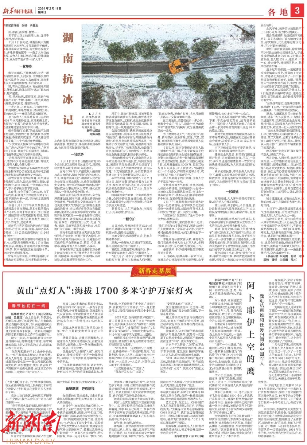 城乡遭遇冰冻,亦有热血化冻。这样的故事,发生在湖南的大街小巷、山野田间。