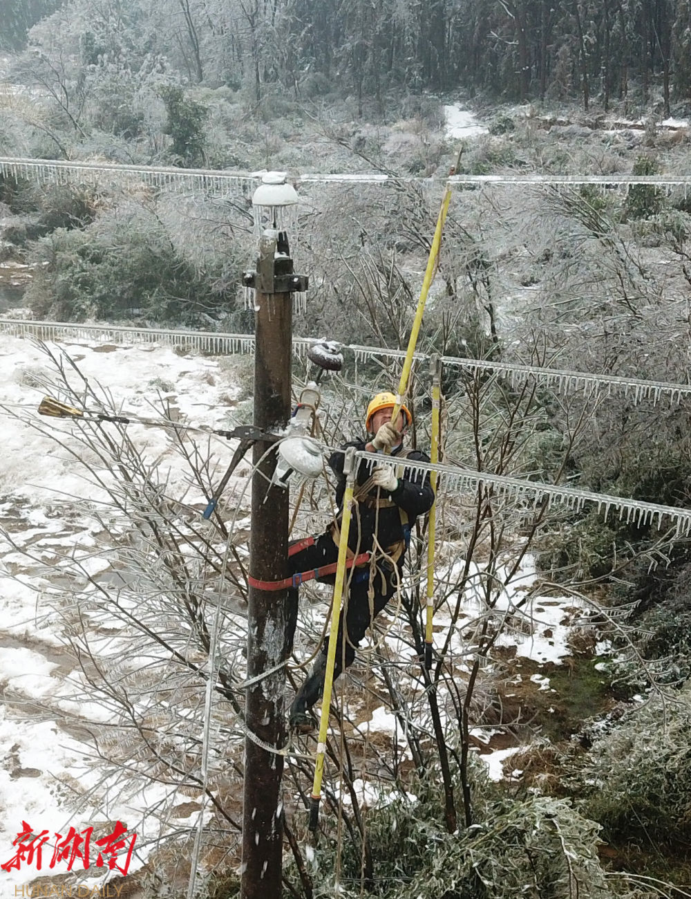 国网湖南电力则第一时间派出精锐力量,会同各路应急支援队伍,爬冰卧雪、风餐露宿全力展开电网抢修、力保电力供应大局稳定。
