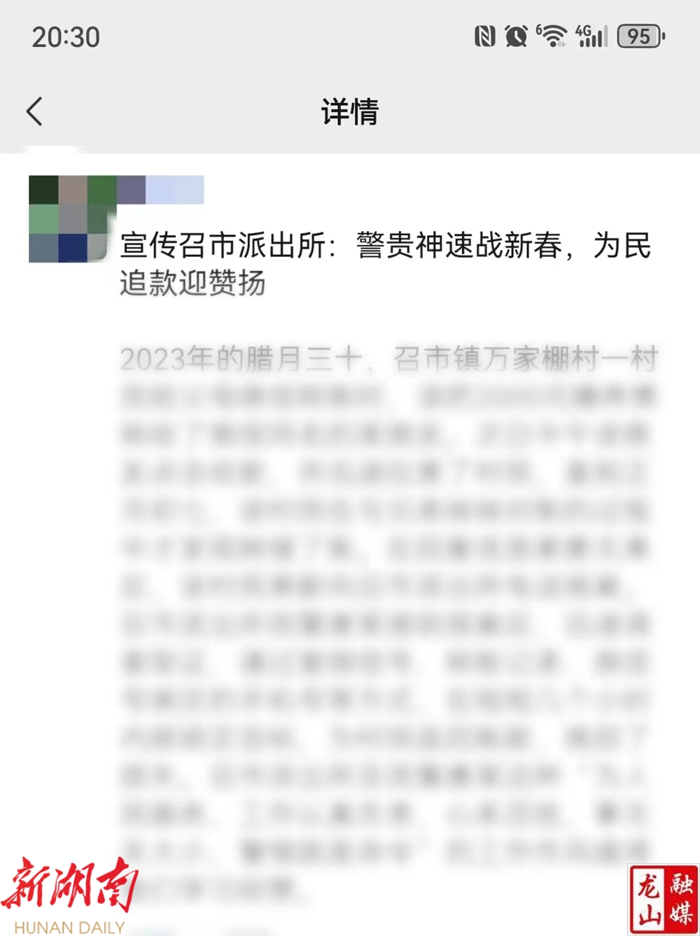 除夕粗心转账七天后发现 龙山公安助力速找回 群众发朋友圈点赞