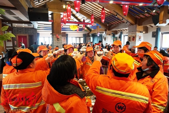 致敬“城市美容师” 张家界武陵源140名环卫工人提前吃上“年夜饭”