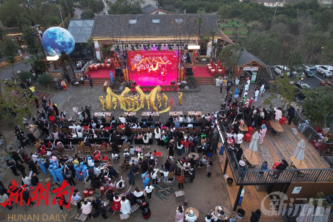 新沅江客户端2月18日讯 (记者 黄曦 朱子豪)2月17日晚,琼湖街道办事处小河咀村响起了铿锵有力、节奏欢快的锣鼓声,两条金龙盘旋而出,拉开了沅江市“沅来有乐·村村有戏”2024年琼湖街道办事处小河咀村以文化振兴推动乡村振兴“村晚”活动的帷幕,用渔耕文化唱响乡村振兴之歌。