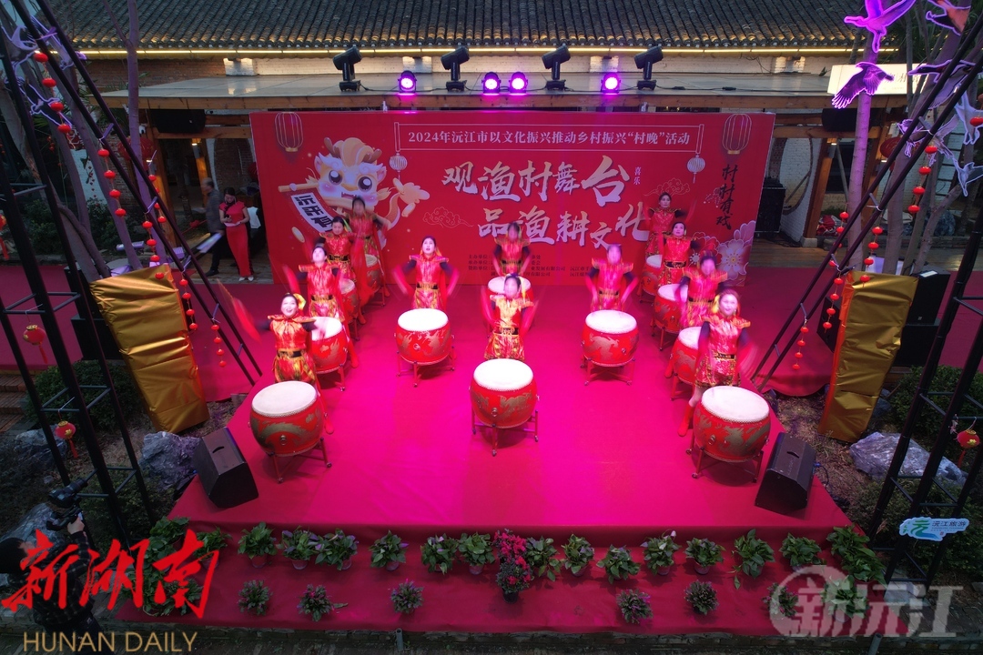 小河咀村是沅江市有名的老渔村,渔民上岸以来,该村在市委、市政府的大力支持下,以渔耕文化为魂,持续推进“以文化振兴推动乡村振兴”,全力打造“渔文化”特色品牌,大力发展乡村旅游,并成功获评省级乡村治理示范村,第五批全省乡村旅游重点村。渔耕文化的深入挖掘,不仅给乡村发展注入新动能,也让村民生活变化日新月异,“村晚”的举办是一场文化盛宴,也是当地村民共同欢庆繁荣盛世,用渔耕文化唱响乡村振兴之歌、点燃文化振兴“新引擎”的具体表现。